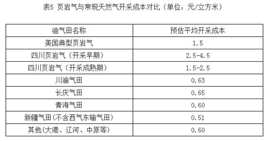 根據美國頁巖氣的開發情況,預測目前中國四川盆地的頁巖氣開采成本2.5-4.5元/立方米(現階段預測頁巖氣開采的經濟性尚缺乏很多實證數據,因此該數據僅具備參考意義),高于美國頁巖氣成本,更遠高于國內天然氣的開采成本。產量是頁巖氣開采成本的關鍵指標,隨著開采技術的成熟,頁巖氣成本具備較大下行空間,預計開采成熟期,四川盆地的頁巖氣開采成本可降至1.5-2.5元/立方米。